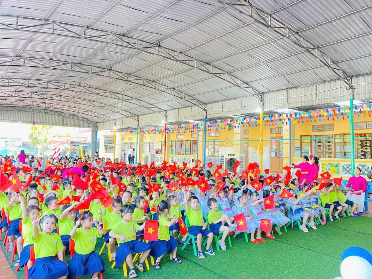 Chăm sóc và giúp trẻ phát triển khỏe mạnh là một trong những mục tiêu lớn được đưa lên hàng đầu, nhà trường luôn quan tâm đến chế độ dinh dưỡng và phòng chống dịch bệnh cho trẻ theo các độ tuổi, đảm bảo an toàn cho trẻ khi ở trường.